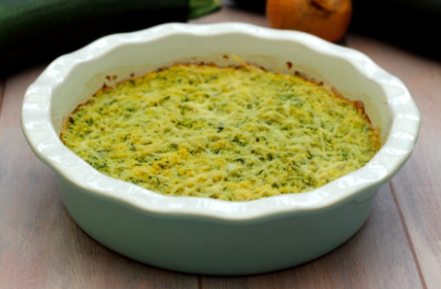5. Pour the mixture into a gratin dish or a cake pan, then sprinkle the remaining grated cheese on top. Bake for 30-35 minutes. Serve hot or cold.