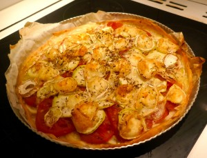 11. Bake the tomato, zucchini, and goat cheese tart for 25 to 30 minutes, until golden brown.