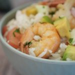 7. In a large salad bowl, combine the rice, vegetables, pineapple, and shrimp. Mix well.