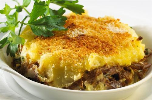 Butter the bottom of a gratin dish. Alternate layers of mashed potatoes with layers of meat.