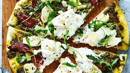 Discover how to make a recipe for pesto and burrata pizza by following the simple steps of our preparation. A vegetarian dish rich in flavors that will please the whole family.