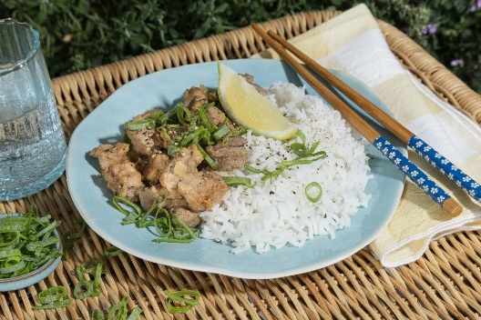Discover the recipe for pork shoulder sautéed with sesame puree, a quick and delicious dish. Served with basmati rice, this dish is perfect for a family meal or gathering with friends.