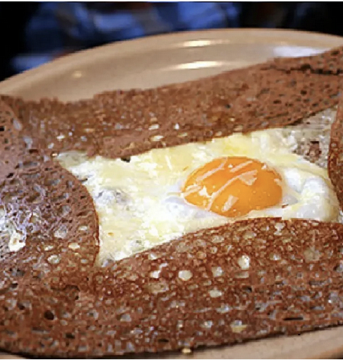 13. Note: Cook a fried egg separately and place it on top of the crepe at the end of cooking.