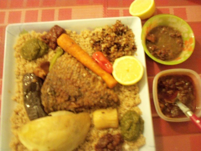 Serve with the nététou sauce and the beugueuthie sauce on the side.