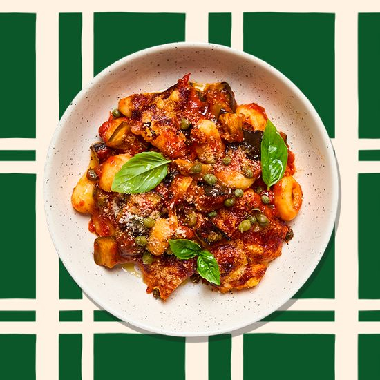 3. Once the eggplants are soft. Add the gnocchi, tomato sauce, oregano, and capers, if you have them. Mix everything. Sprinkle with parmesan and continue cooking.