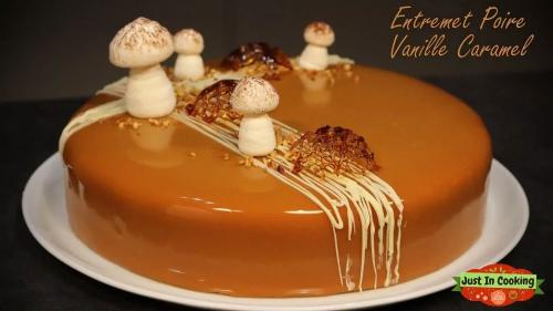 38. Strain the glaze and let it cool to 27°C before glazing the entremet.