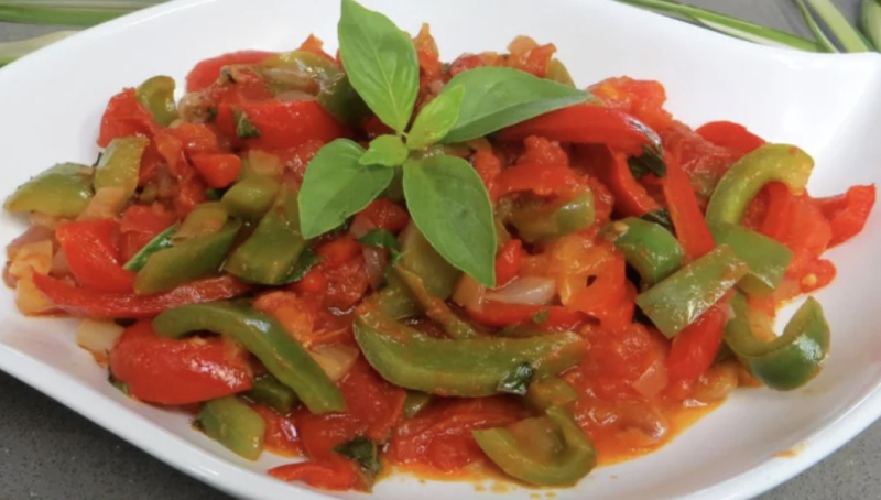 4. In the skillet, add the peppers, tomatoes, cook over moderate heat for about 15 to 20 minutes, then add the salt, pepper, and cumin.