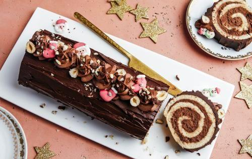 5. Assembly: Spread the vanilla cream over the entire surface of the cooled sponge cake. Sprinkle with dark chocolate chips and/or crumbled toasted sliced almonds. Gently roll up the sponge cake. Secure the shape with the parchment paper. Place your Yule Log in the refrigerator for 1 hour.