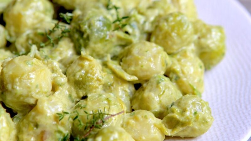 Mix carefully and let simmer for 2 minutes, just until the sauce coats the sprouts well.