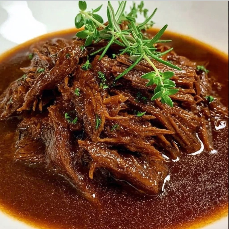 Shred the meat using 2 forks and let the sauce thicken for 10 minutes.