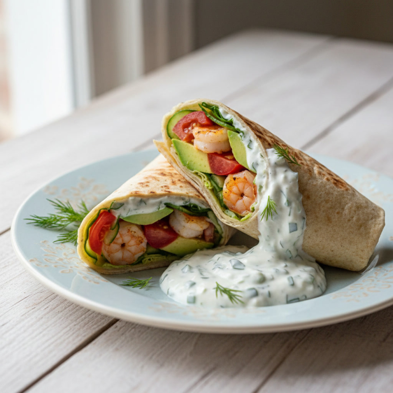 1️⃣3️⃣ 🔪 Cut & serve: cut each wrap in half diagonally. Serve with the remaining dill yogurt sauce on the side (or drizzled on top).
