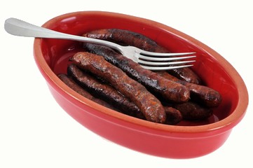 Merguez is a small spicy red sausage from the Maghreb, about two centimeters in diameter, made from a minced meat mixture stuffed into sheep's small intestine. The meat can be beef and/or lamb.